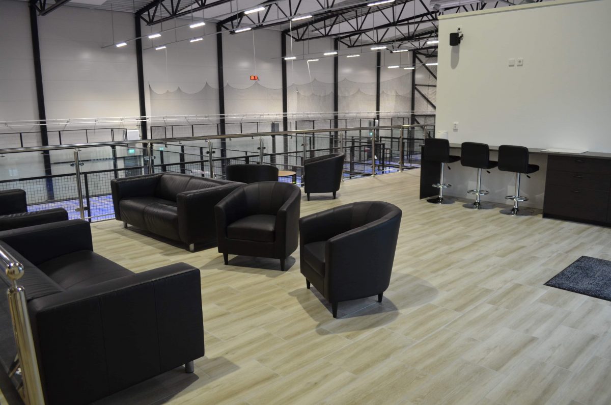 Hallen har högt i tak, är 1 800 kvadratmeter stor, har en konferensdel på 170 kvadratmeter och erbjuder åtta olika banor att spela på, varav två utomhus. Tre av dessa är banor för singelspel. Byggprojektet inleddes i höstas och stod helt klart strax innan sommaren.