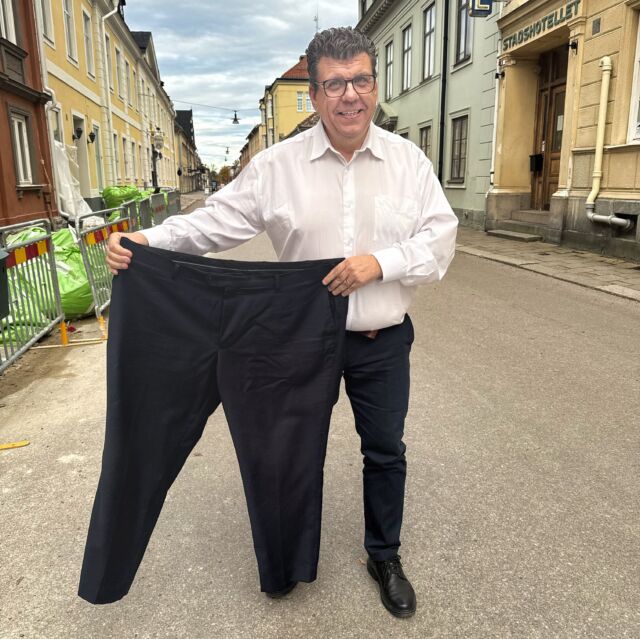 – Du måste byta ut stora delar av din garderob. Det mesta är plötsligt alldeles för stort. Men det är ett pris, värt att betala, säger Marcus och skrattar högt och hjärtligt.