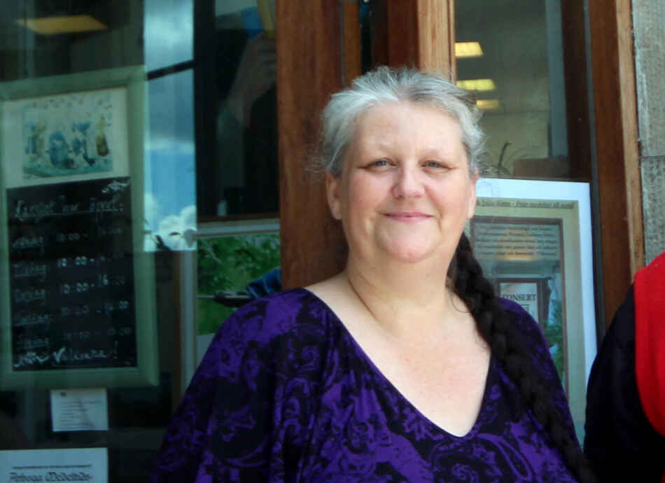Uppmanar. Jill Madden från föreningen Arboga Medeltid vill gärna ha fler anmälningar till kapprodden på Arboga medeltidsdagar. Foto: Eija Salminen