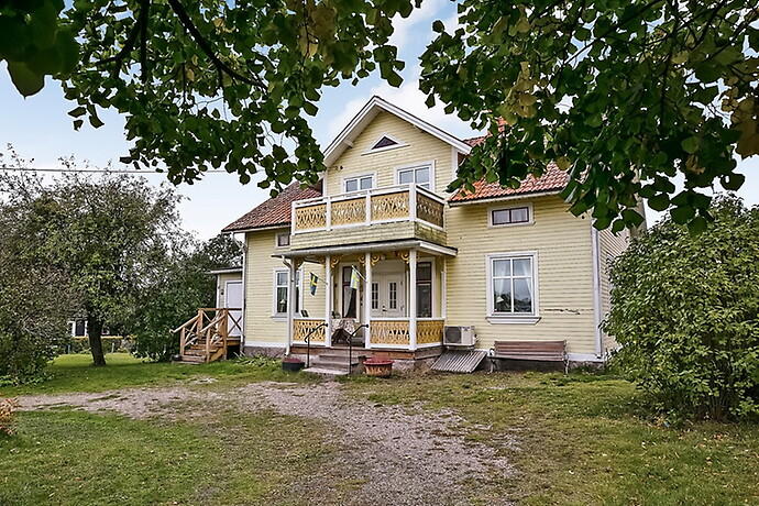 Sexrumsvilla om 156 kvadratmeter som byggdes vid sekelskiftet, något som speglas genom gamla trägolv, flera kakelugnar, pärlspont och fönster med spröjs. I köpet ingår två tomter om sammanlagt 2 598 kvadratmeter.