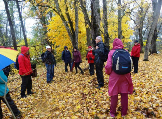 Så var det dags för ett avslut av vår vandring, och alla var överens om att det blev en trevlig och informativ samvaro tillsammans, trots regnet. Efter att ha tackat vår vandringsledare så avslutades det hela med återvandring till startpunkten och väl där kunde vi konstatera att vi under våra timmar på vandring tillryggalagt strax över 8 km.