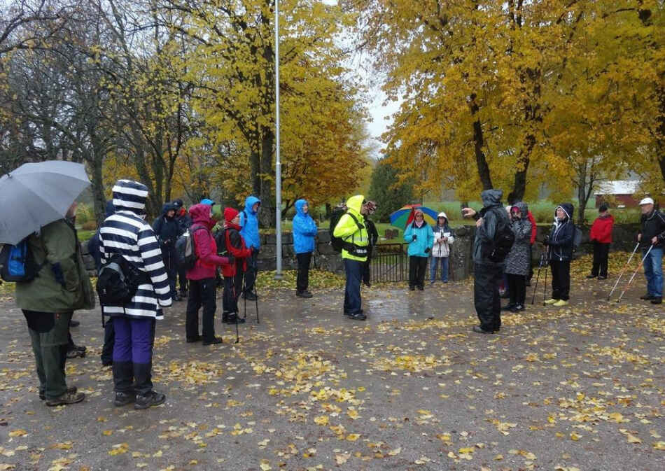 Onsdagen den 28 oktober genomfördes föreningens traditionella höstvandring som denna gång verkligen kom att göra skäl för namnet då vi möttes av ett riktigt höstväder med småregn och lite blåst. Men det var inget som stoppade de 26 deltagarna som mötte upp vid den gamla Shellmacken intill Jäderstullen, alla med samma inställning ”det finns inget dåligt väder, det finns bara dåliga kläder”.