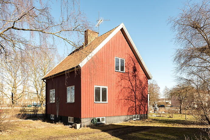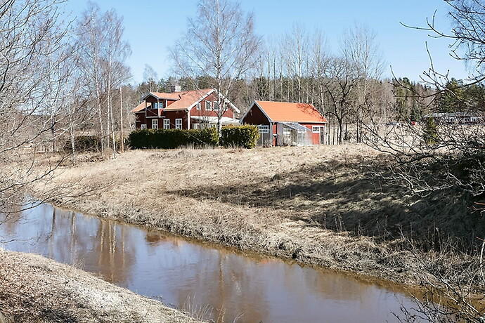 Den rymliga sexrumsvillan har tidigare varit en skola, och ligger avskilt belägen vid Kölstaån med kort gångavstånd till Odensviskolan. Mäklaren beskriver fastigheten som varsamt renoverad med känslan av att bevara den unika karaktären som byggnaden återger.
