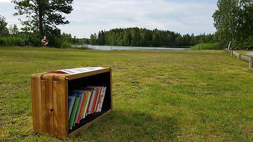 På fyra av naturbaden i Arboga kommun har man ställt ut boklådor.
