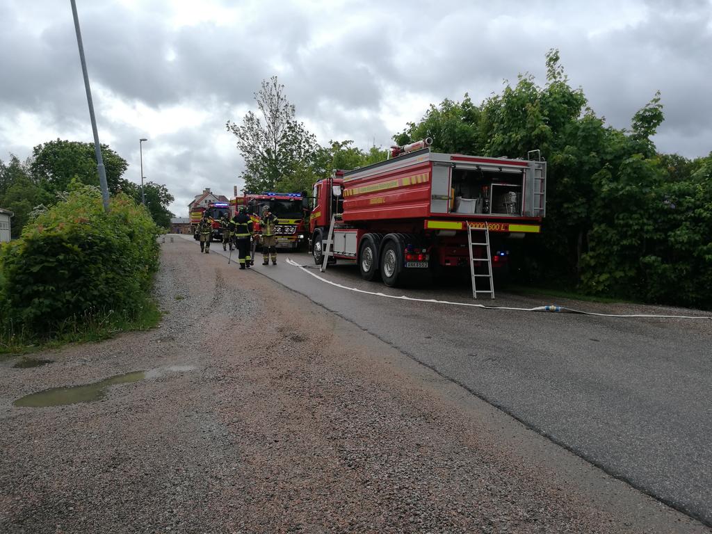 Flera brandbilar var på plats på Jädersvägen. Foto: Pär Eriksson