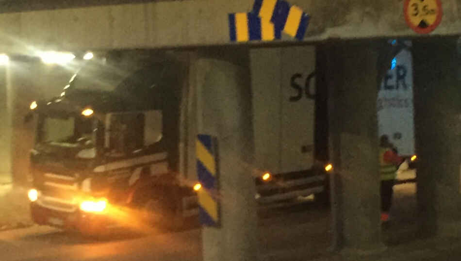 Vid 18.10-tiden under onsdagen inkom ett larm om att en lastbil fastnade under viadukten på Stureleden i Arboga. Räddningstjänst har larmats till platsen.