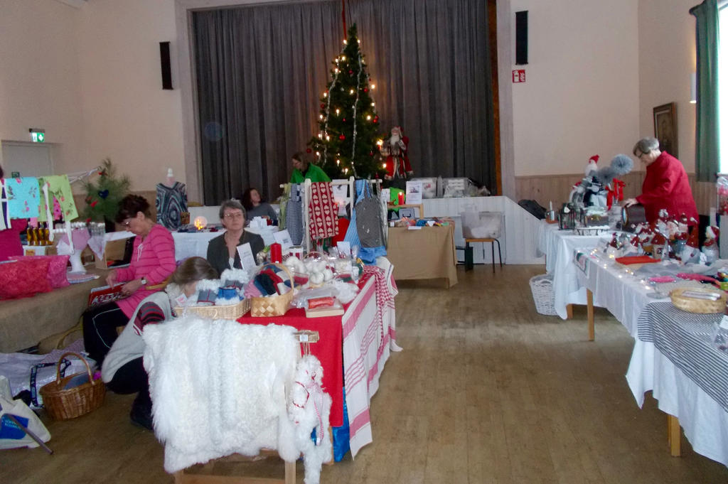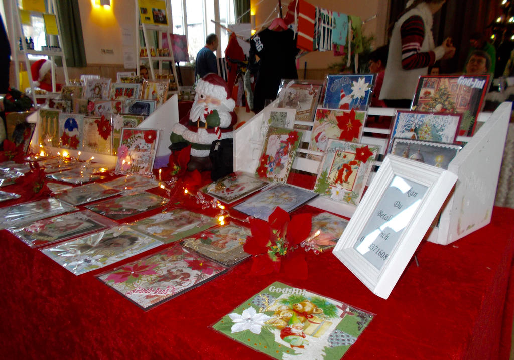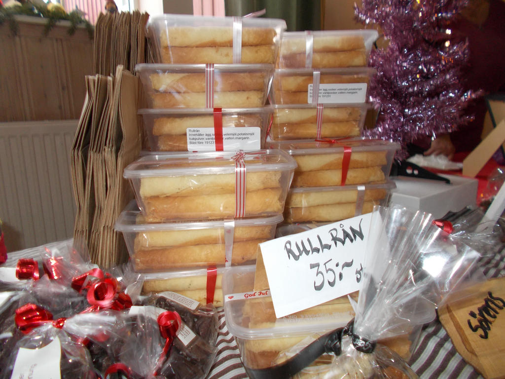 Redan utanför hembygdsgården kantades uppfarten mot huset av flera knallar och inne i huset fanns ett 20-tal bord med försäljning av såväl hantverk som diverse ätbart julpynt och värmande hemstickade plagg.