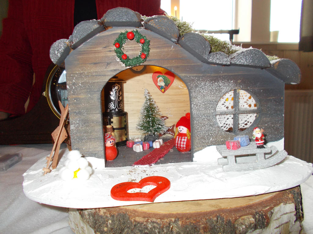 Ett alternativ till julkrubba – ett litet vanligt hus i mindre format och många detaljer.