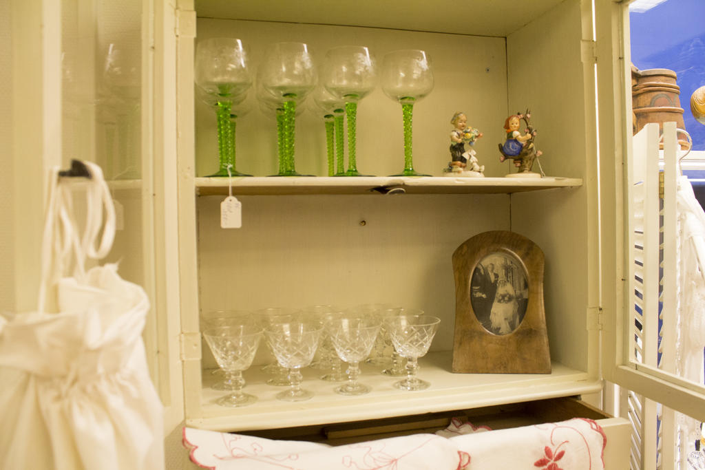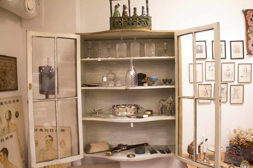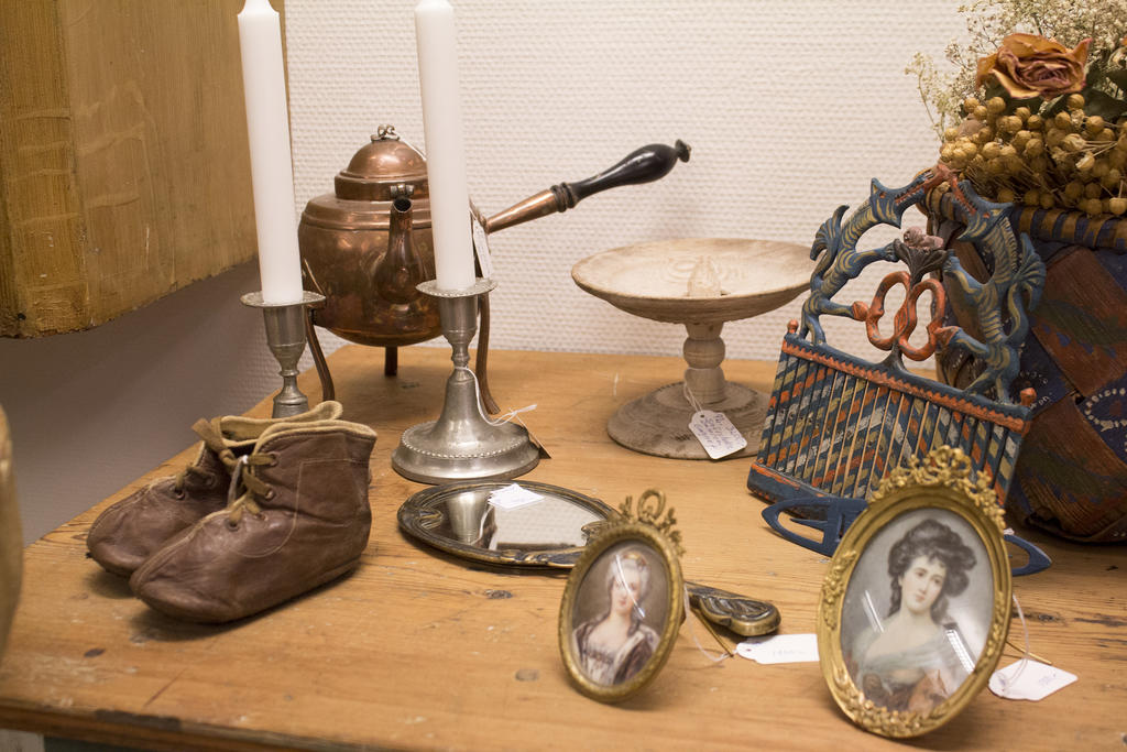 – Sen har vi en blandad mix här i butiken. Här finns allt från det gamla skrinet till föremål från 1950-talet. Vi försöker vända oss både till småfyndarna och de som vill satsa lite mer.