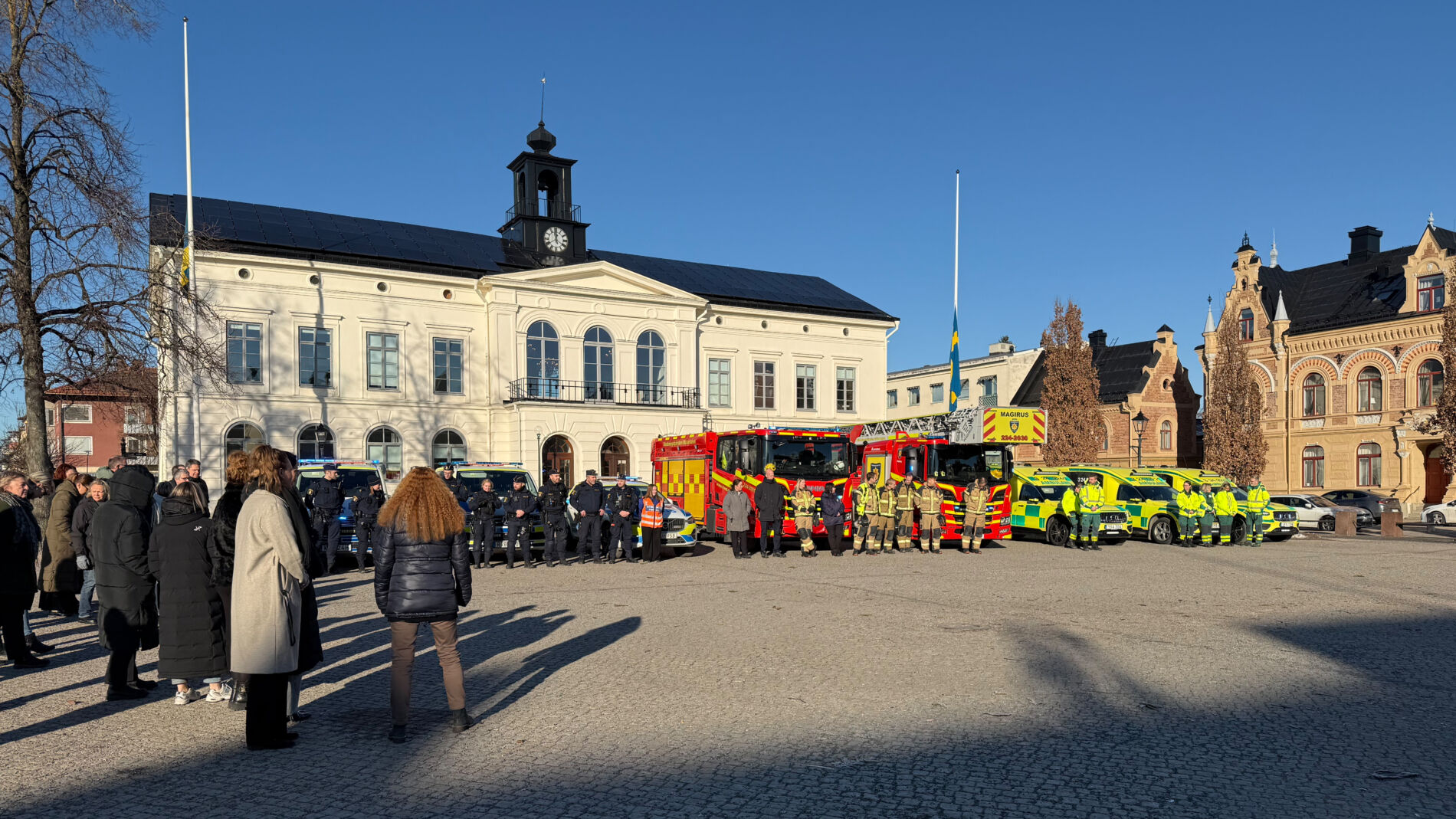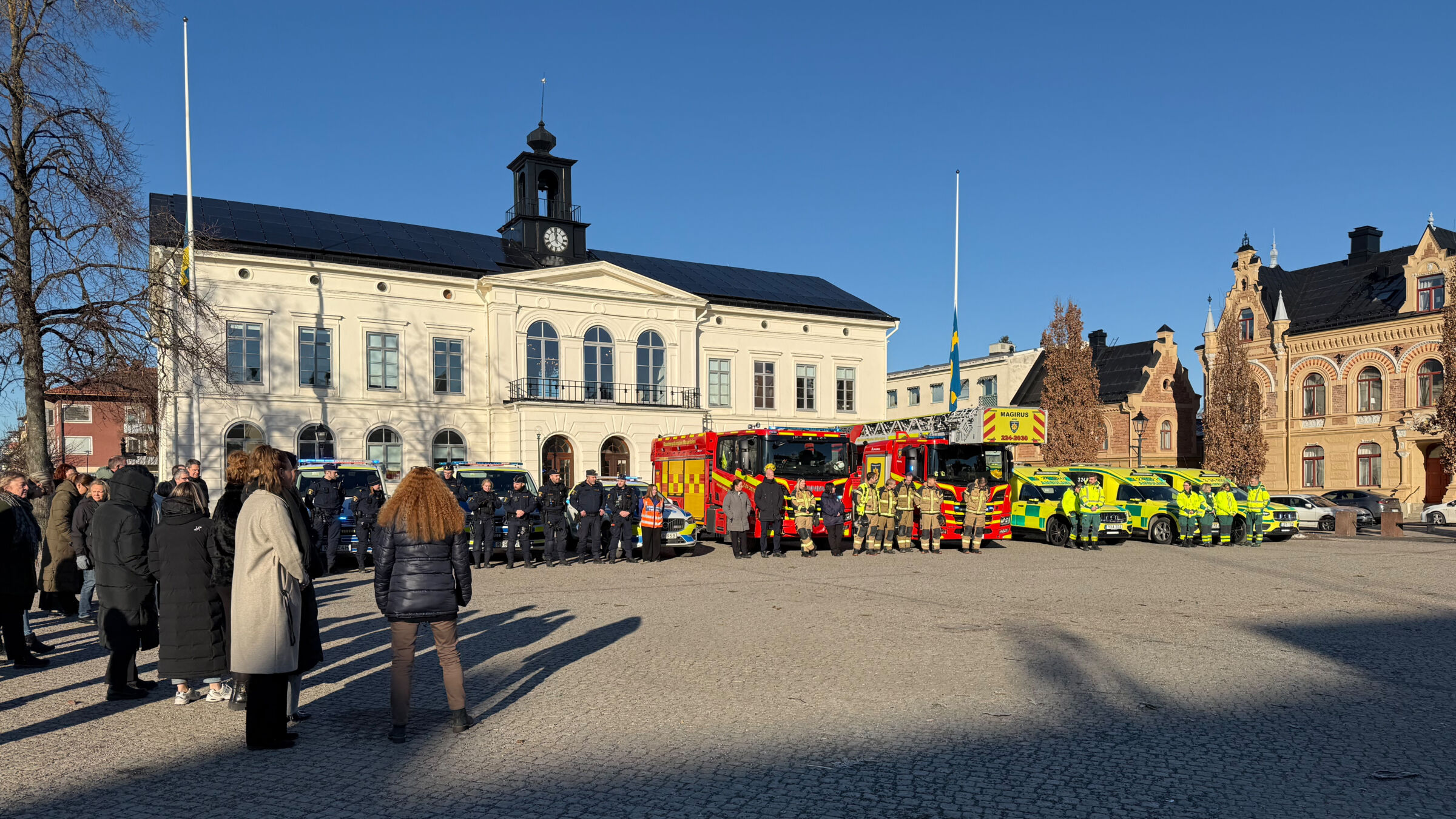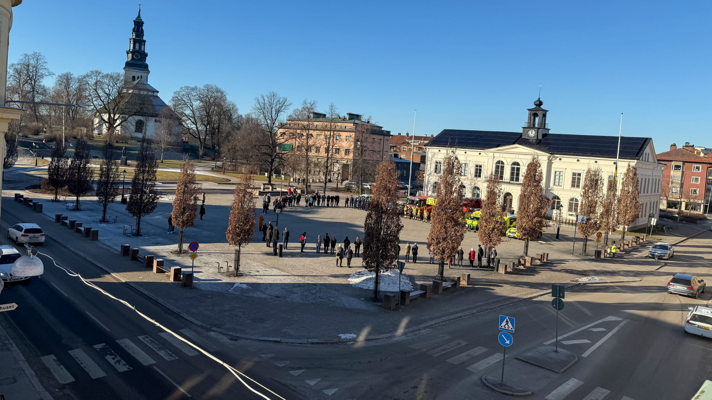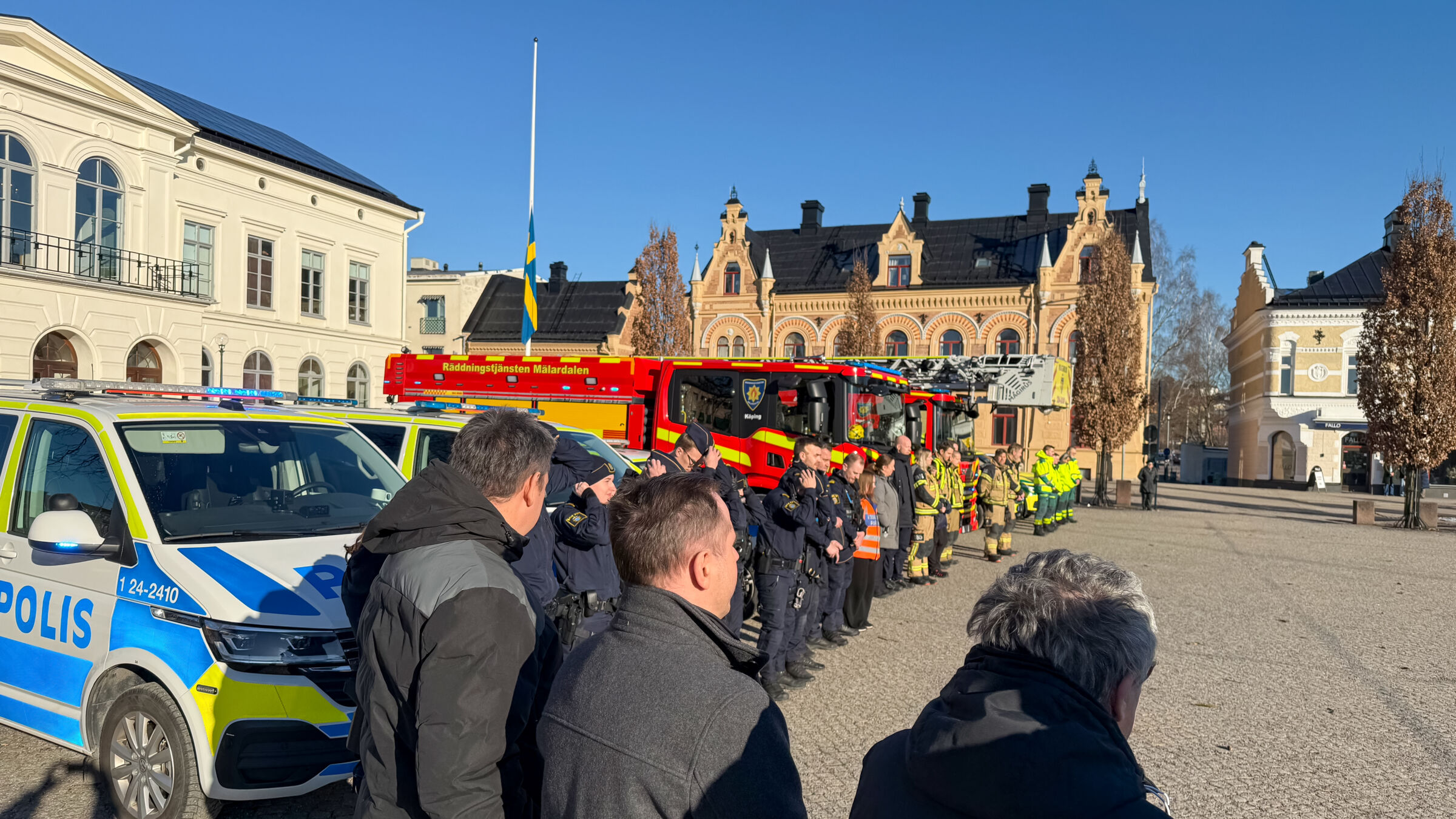På Stora torget i Köping samlades blåljuspersonal från ambulansen, polisen och räddningstjänsten tillsammans med personer från Köpings kommun och flertalet privatpersoner.