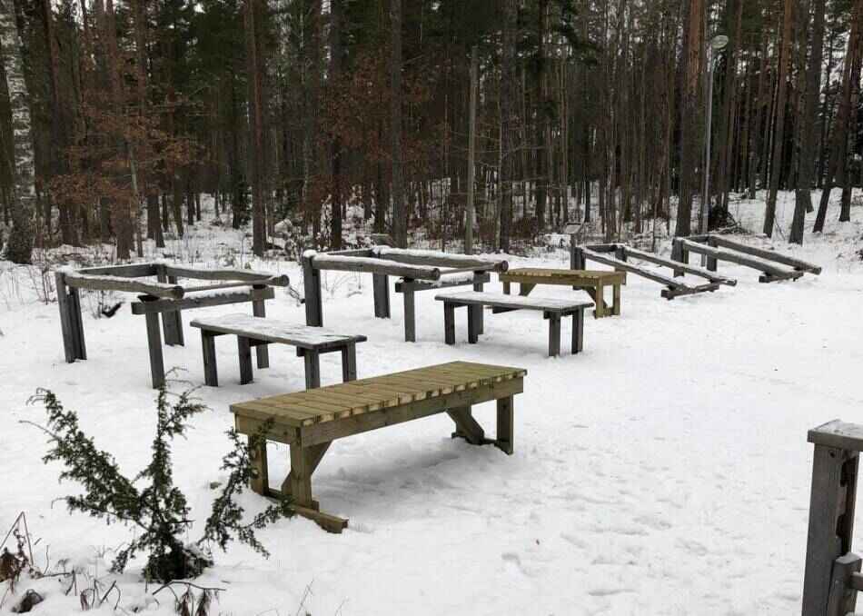 Även Teknikbacken har fått ett tillskott i form av tre nya pausmöbler, vilket gör att besökarna kan ta fikapausen utomhus nu när värmestugan är stängd med anledning av corona.