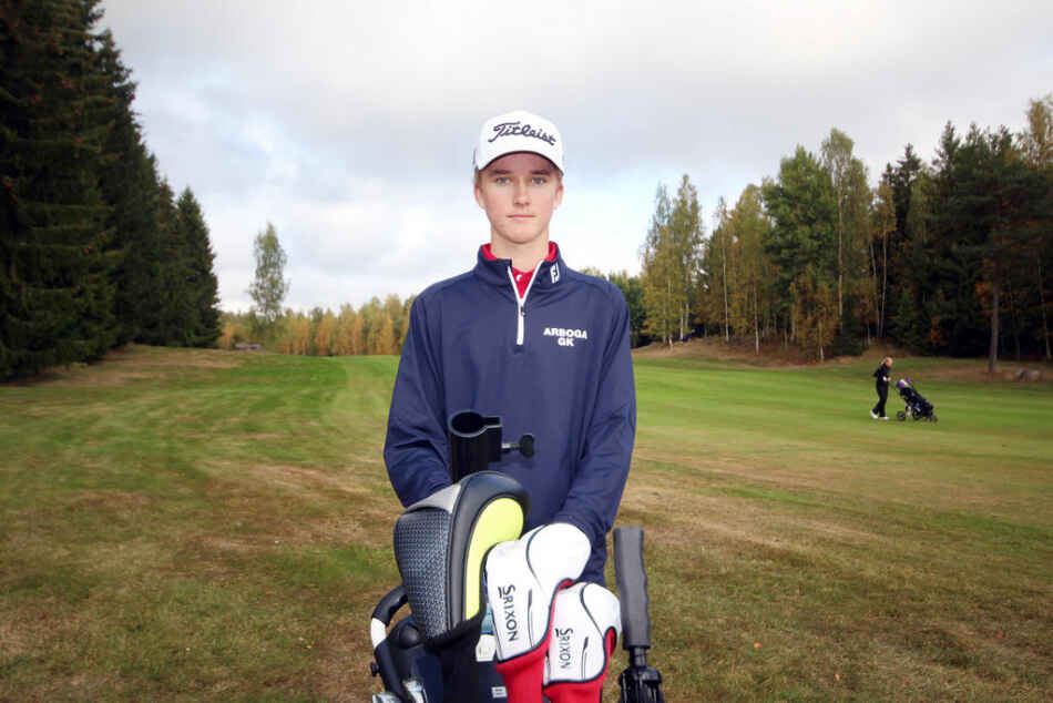 Vasagymnasiets och Arboga Golfklubbs Simon Garman. FOTO: BJÖRN BLOMGREN