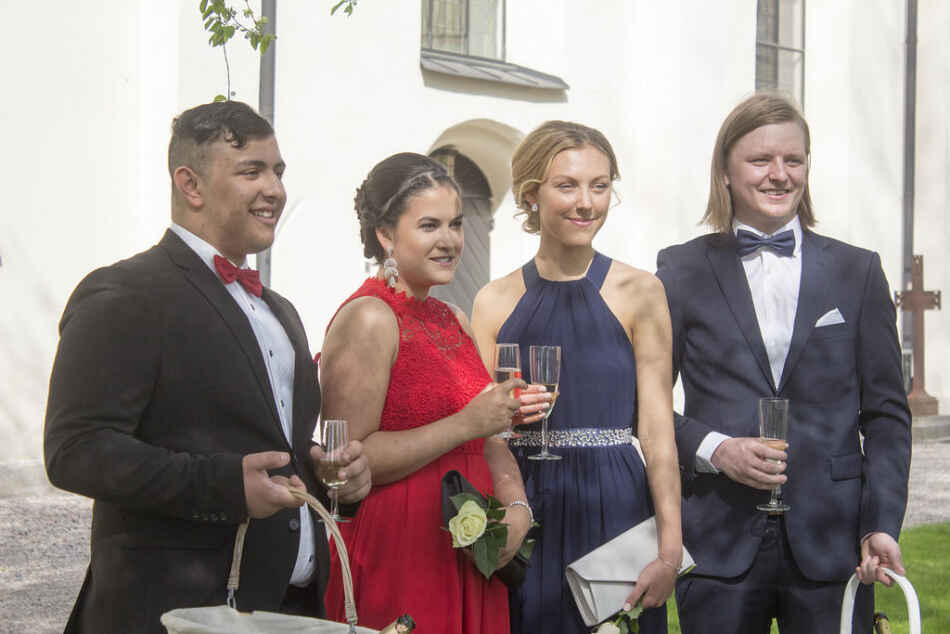 De går sedan i samlad trupp mot Bivurparken för sedvanligt balmingel där elevernas nära och kära får en chans att beundra och bevara ögonblick från dagen.