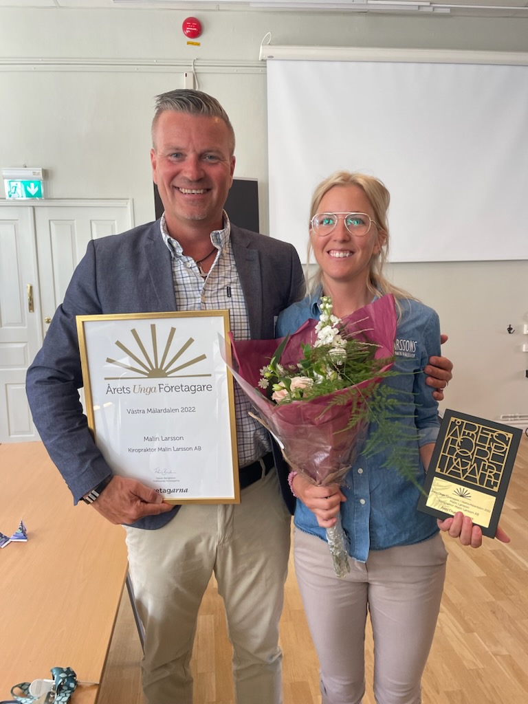 Priset som ”Årets unga företagare 2022” mottogs av Malin Larsson som har Malin Larsson Kiropraktik AB (Larssons Hälsoklinik). Motiveringen löd: