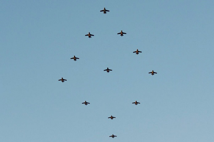 ”Att öva för att upprätthålla vår förmåga till det nationella försvaret är en viktig del. Formationsflygning – julgransflygning – är en bra övning för stridsflygdivisionerna att planera och genomföra flygning i större formation under en längre tid. Det är också ett sätt för Flygvapnet att visa närvaro, som en garant för medborgarnas säkerhet mot yttre hot, på platser som Försvarsmakten kanske inte syns så ofta”, skriver Försvarsmakten i ett pressmeddelande.