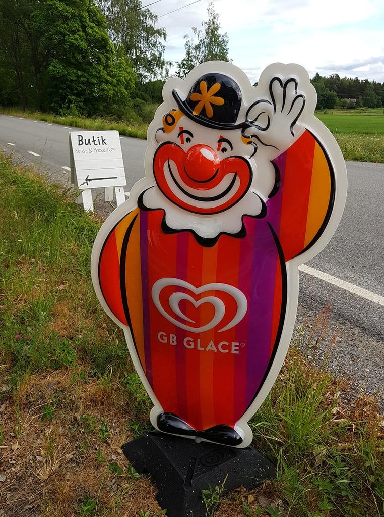 Någon tyckte tydligen att Lindas GB-gubbe vid vägkanten behövdes bättre någon annanstans, för plötsligt var gubben borta i torsdags. Tur att LInda är konstnär och snabbt kunde göra en egen skylt…