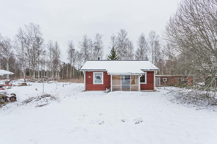 Fritidshus om 53 kvadratmeter belägen på en stor och lummig naturtomt i ett av Köpings mest populära fritidshusområden. På tomten finns även två förråd och uteplats med tak.