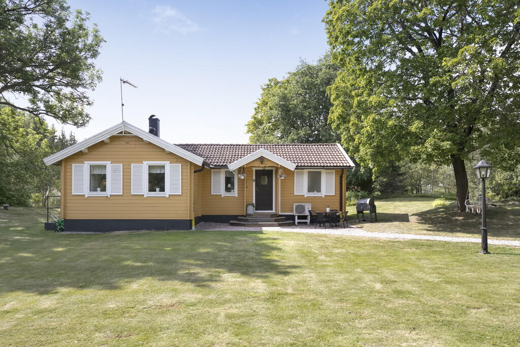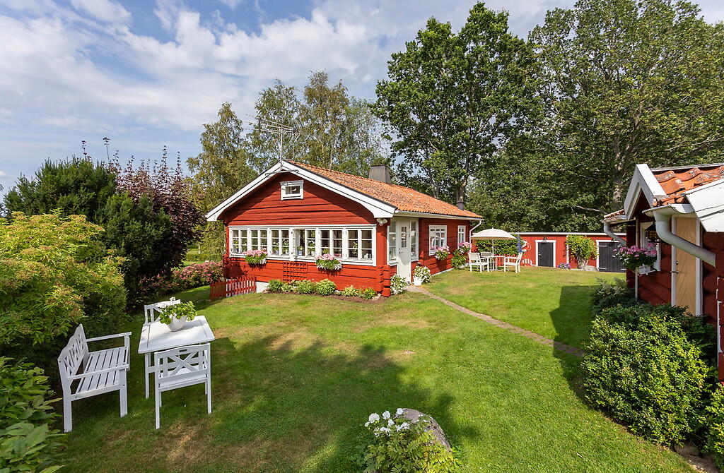 Fritidshus om 65 kvadratmeter som beskrivs som ett idylliskt sommarparadis med sjöutsikt mot Hjälmaren. På fastigheten ryms även gästhus, förråd och egen båtplats.