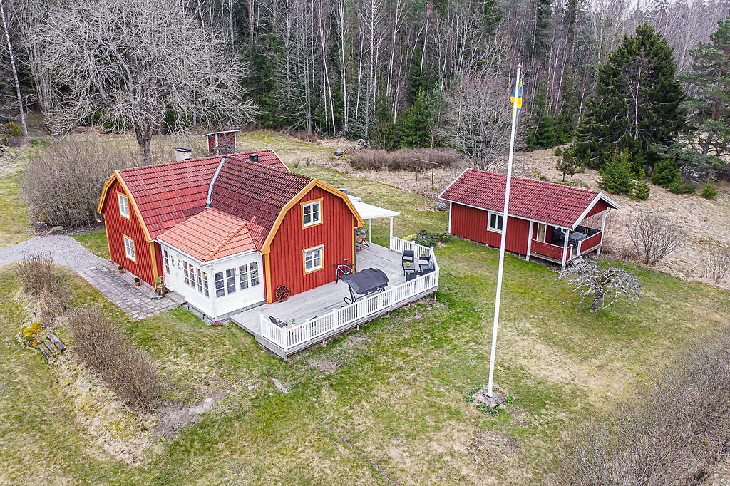 Liten villa om tre rum och kök men med en betydligt större tomt om hela 2,2 hektar belägen i Himmeta utanför Köping. På fastigheten finns även ett sommargästrum, förrådsutrymmen, garage, bastu och flera uteplatser.