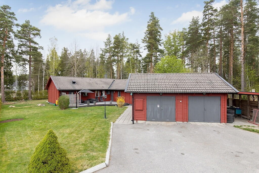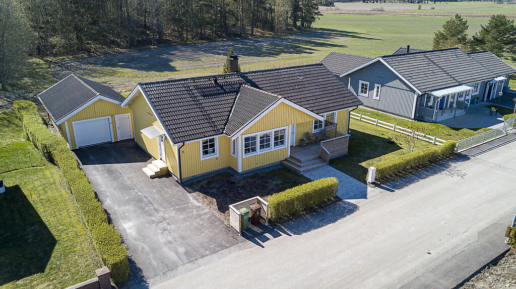 Sexrumsvilla om 148 kvadratmeter belägen på en stor och barnvänlig gaveltomt med många soltimmar. Huset värms upp med fjärrvärme och till fastigheten hör även ett dubbelgarage. Mäklaren beskriver fastigheten som inbjudande och ljus.
