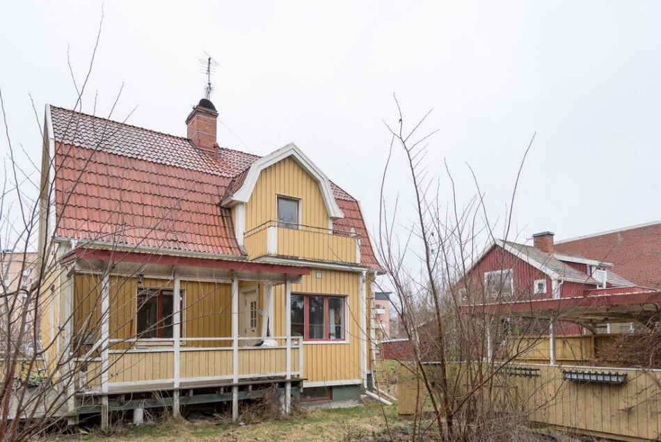 Femrumsvilla om 128 kvadratmeter beskrivs av mäklaren som charmig, men med ett visst renoveringsbehov. Huset är beläget på en barnvänlig och lummig trädgårdstomt med bland annat lekstuga och sandlåda. Beskrivs som ett perfekt läge för den som uppskattar att bo centralt.