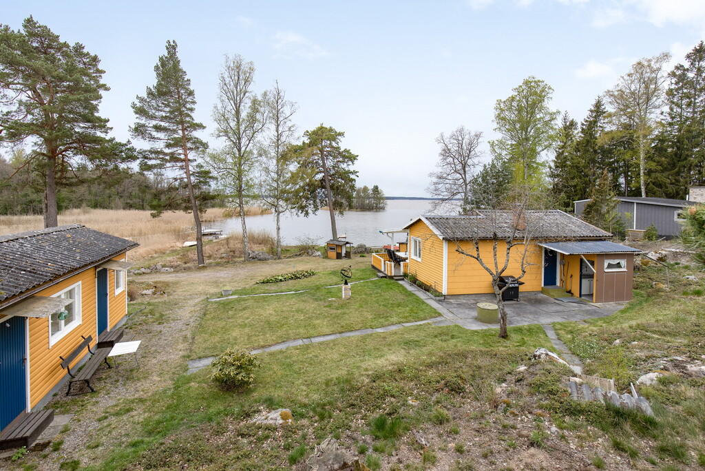Beskrivs som ett trevligt fritidshus på arrenderad tomt med kök, inbyggd veranda och allrum med öppen spis. Altan under tak med utsikt över Mälaren samt gästhus med två sovrum. Till fastigheten hör även brygga med bad och båtplats.