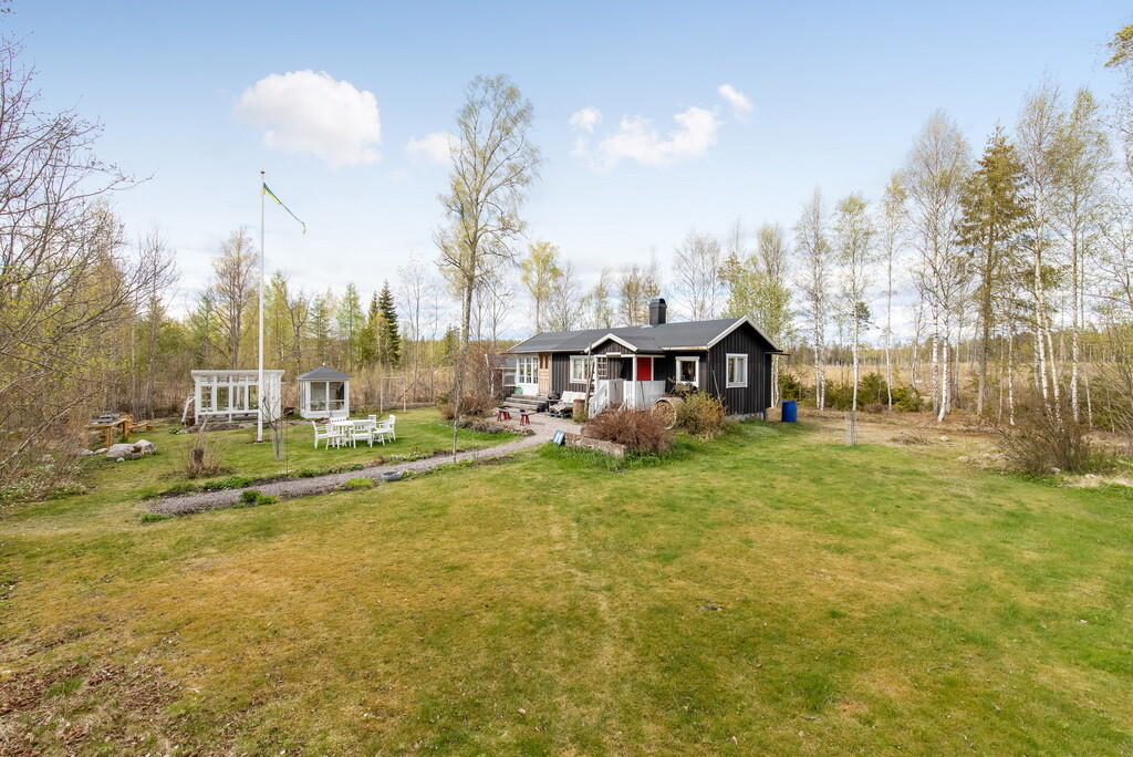 Beskrivs som ett charmigt sommarboende med utmärkt läge intill Kolbäcksån. På fastigheten ryms en storstuga om 30 kvadratmeter, ett gästhus med två sängplatser samt uthus med toalett och dusch.