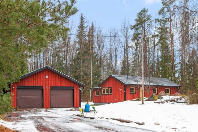 Beskrivs som ett enplanshus med stor potential och lantligt läge i Himmeta utanför Köping. Fyra rum och kök fördelas på 102 kvadratmeter. Till fastigheten hör även ett dubbelgarage med plats för två bilar och en separat förrådsdel med bastu.