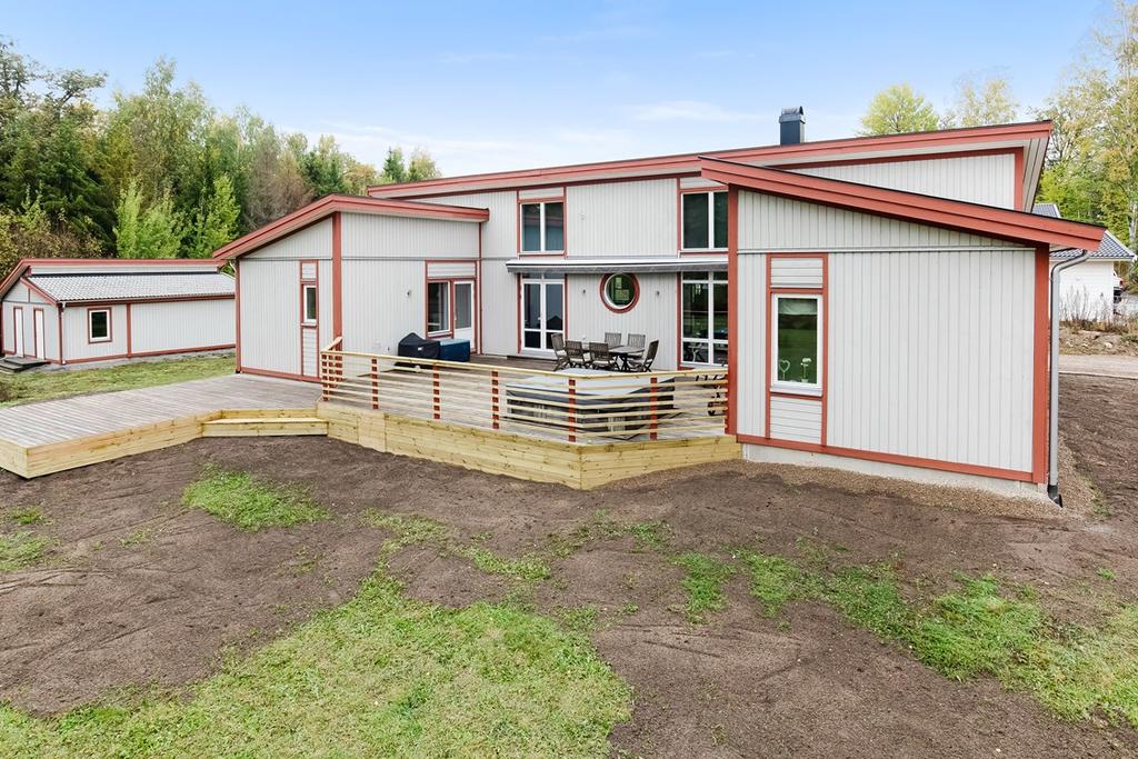 Beskrivs som en exklusiv enplansvilla om 166 kvadratmeter med mycket hög standard. Huset är beläget på en lugn återvändsgata med cirka 700 meter till Sandabadet. De 166 kvadratmeterna fördelas på sex rum och kök.