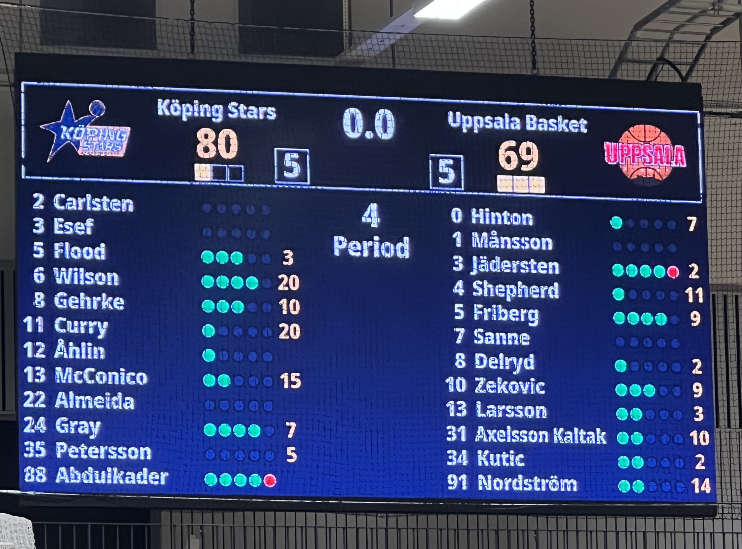 Svenska Basket Ligan (SBL herr) består av 11 lag. 8 lag går till slutspel. Efter matchen i går kväll ligger Köping Stars och Uppsala lika på 20 poäng, just ovanför slutspelsstrecket. Om dessa båda lag hamnar på samma poäng när grundserien är färdigspelad, räknas de inbördes matcherna. Då har Köping Stars ett överläge tack vare två vunna, en förlorad match, i de inbördes mötena mellan dessa båda lag. Därför var denna match så viktig.
