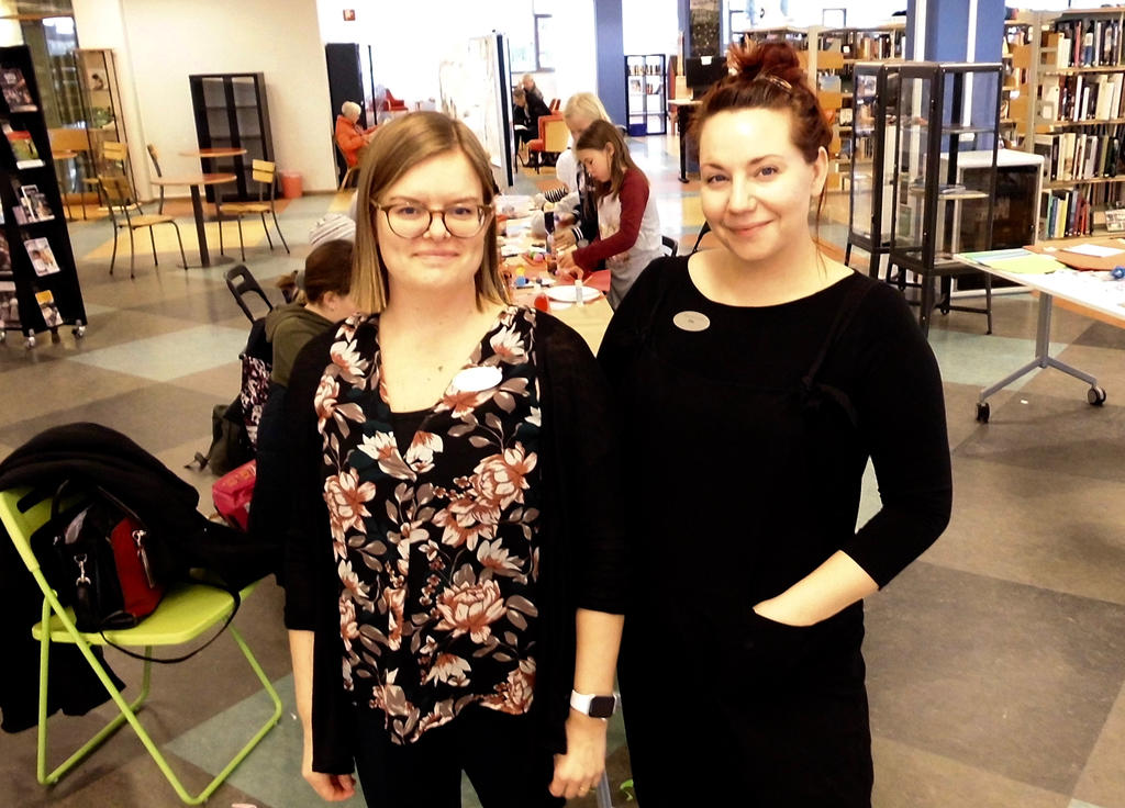 – Vi brukar bjuda in till pyssel inför jul och påsk och på alla hjärtans dag, berättar Elin Zakrisson, en av initiativtagarna till pysseldagarna. Det har blivit en tradition på biblioteket.