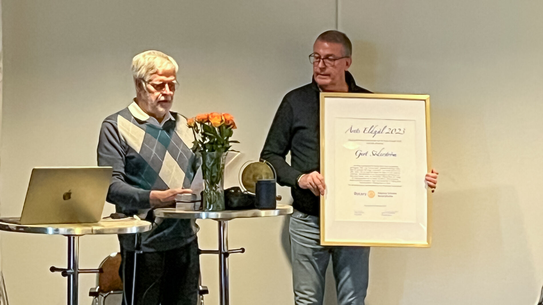 Utmärkelsen delades ut av Lars-Axel Nordell och Mårten Sörhammar från Köping-Scheele Rotaryklubb. Motiveringen löd: