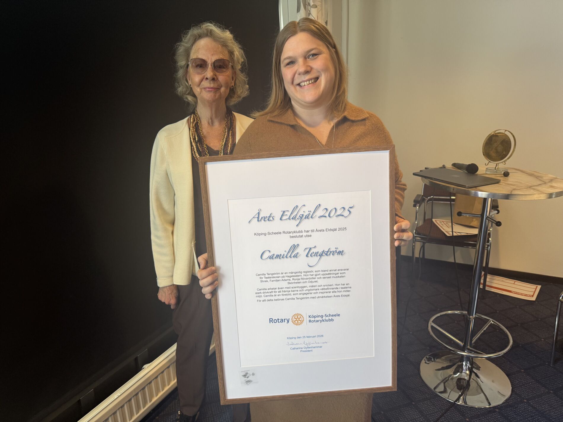 Camilla Tengström, HagaTeatern, får utmärkelsen Årets Eldsjäl 2025 av Köping-Scheele Rotaryklubb.