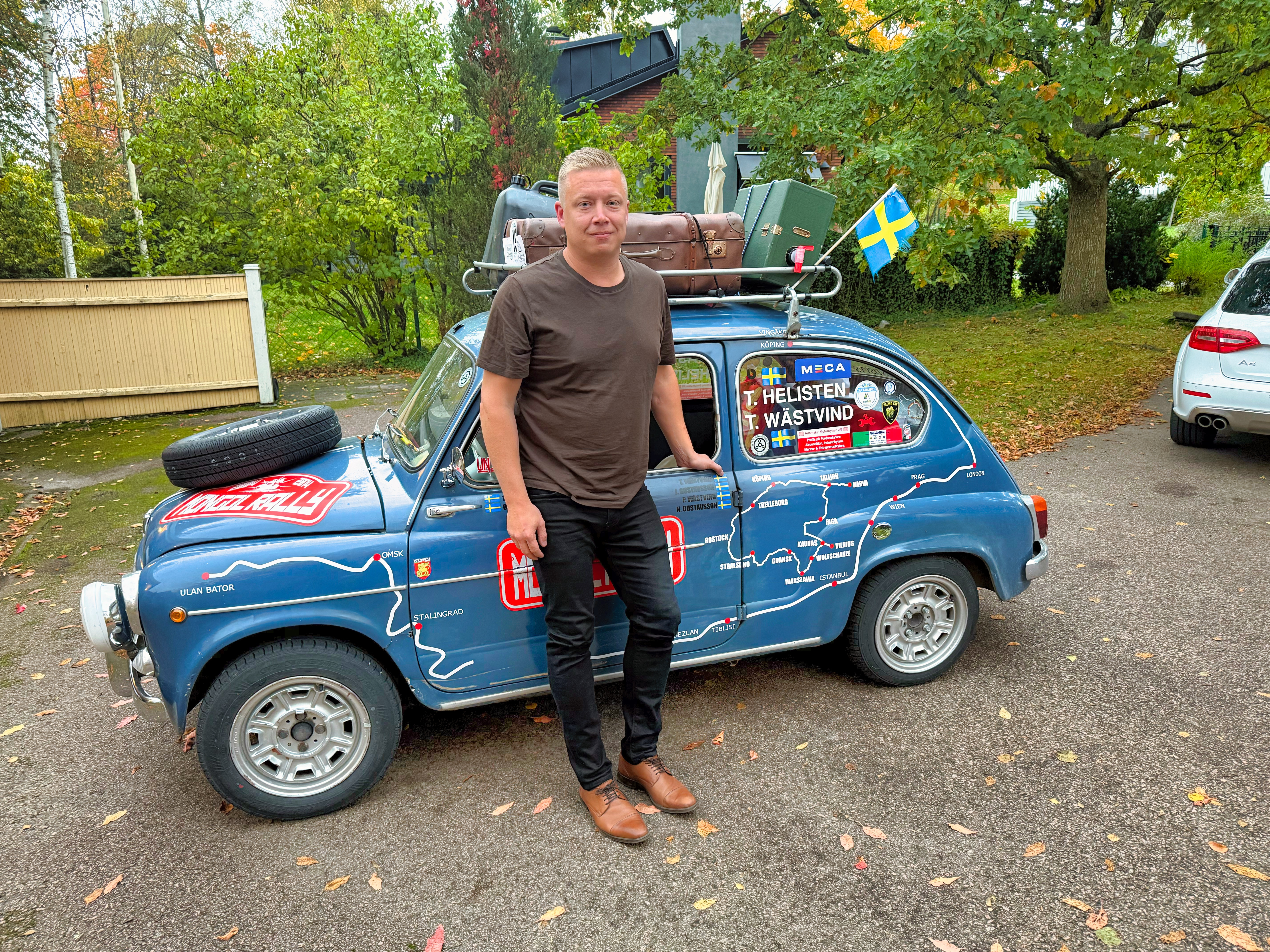 – Jag och min kompis Timo Helisten ville delta i The Mongol Rally 2014. Då fanns det bestämda regler om vilka bilar man skulle köra. Bilen var tvungen att vara tio år eller äldre. Fick inte kosta mer än tusen pund och fick inte ha en större motorvolym än en liter. Det fanns ett kryphål. Ställde man upp med en Lamborghini kunde man strunta i alla regler. Det fick bli en Fiat i stället. Jag fastnade för en Fiat 600, som jag hittade i Norrtälje.