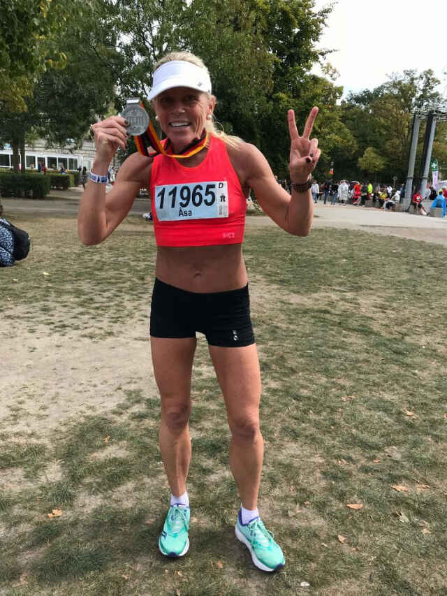– Igår kom jag i mål på Berlin Marathon på 3.08.54 och exakt 32 sekunder från mitt personbästa! Jag nådde inte riktigt, men jag är sååå glad och kände att jag äntligen fick visa vad jag går för inför mig själv. Jag kom på plats 19 i min ålderskategori 45-49, vilket är helt galet med tanke på att det är ett världsmarathon med 44 000 startande totalt, säger Åsa Bäck till Magazin24.