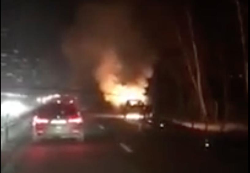 I videon nedan, filmat av läsaren Emma Östensson, kan du se rörliga bilder på den brinnande bilen.