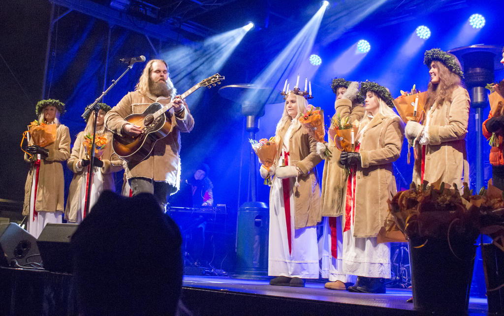 På ett kyligt Hökartorget i Köping arrangerade Sparbanken Västra Mälardalen en julkonsert samt Luciakröning under söndagseftermiddagen. Sparbankens vd Mikael Bohman agerade som vanligt konferencier inför en stor, men kanske lite småfrusen publik.