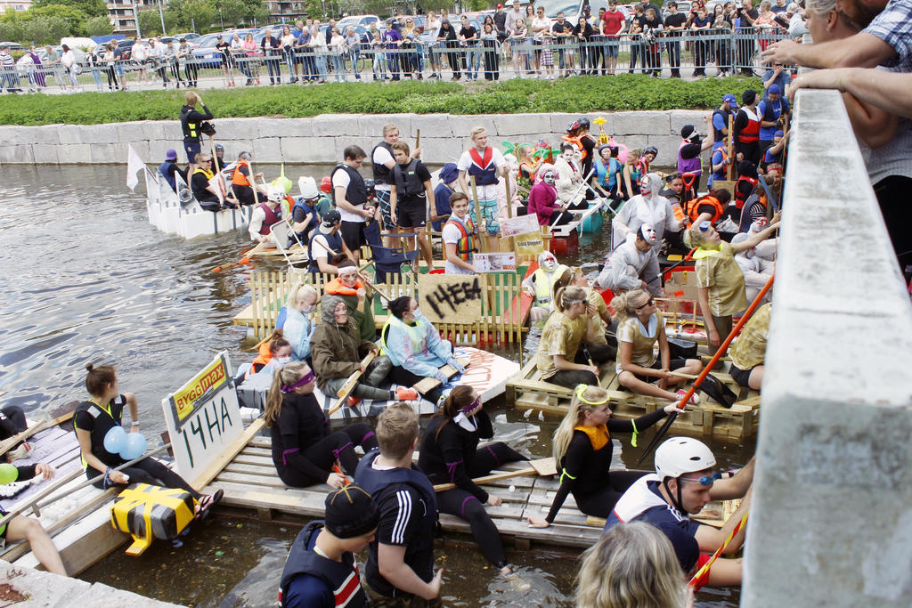 14 tätt packade båtar, med skiftande konstruktion, vattentålighet och flytförmåga, paddlade iväg när startskottet gick vid bron i höjd med Tunadalsparkeringen, vidare mot soltrappan och sen in i mål.