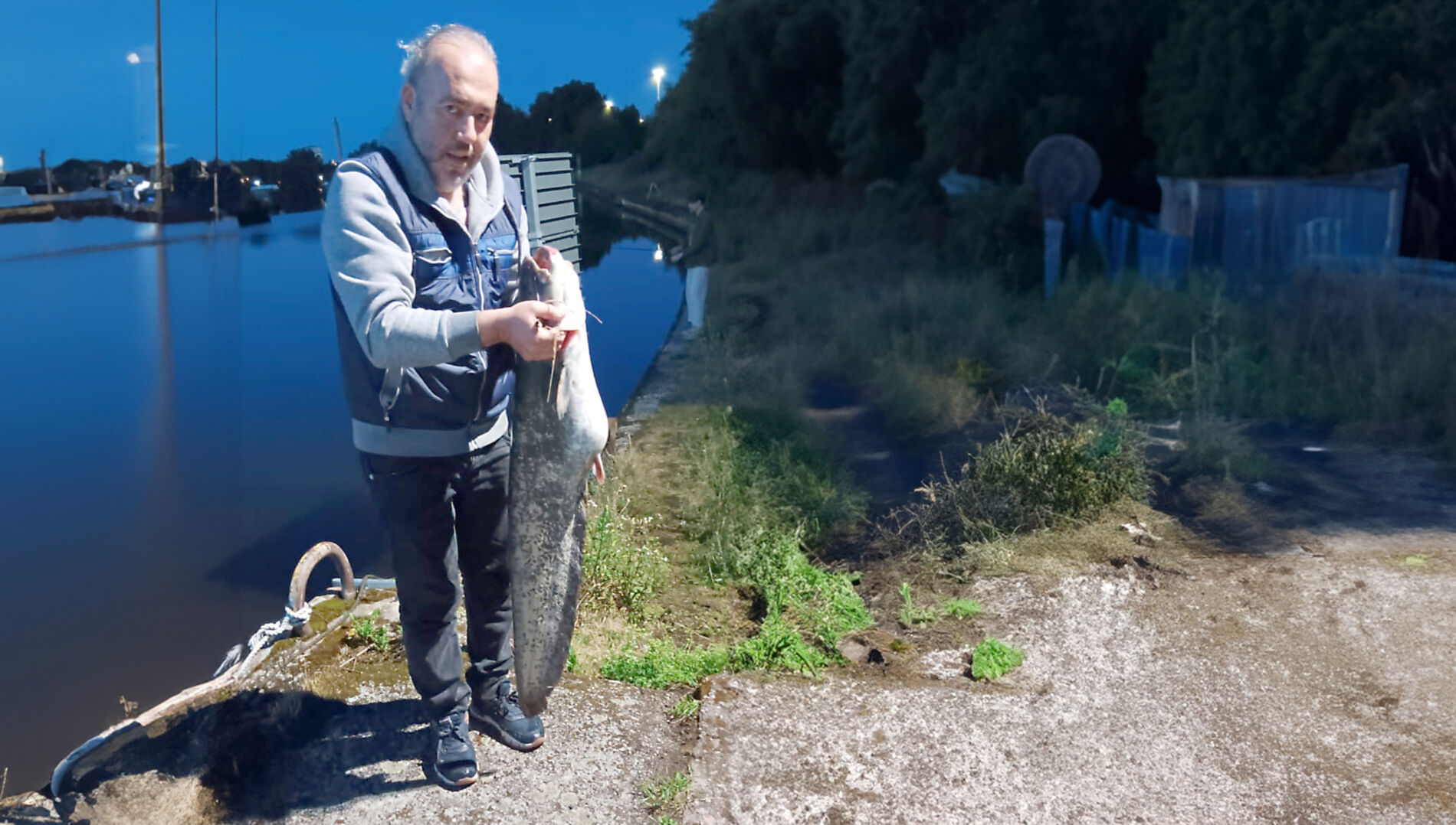 En amatörfiskare i Köping kollade upp sin tidigare fångst.