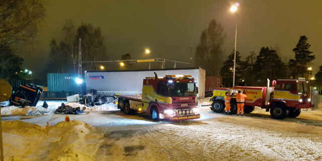 Vid 23-tiden fastnade en utlandsregistrerad trailer när den skulle korsa järnvägsspåret vid Sjöhagsvägen i Köping. Det tros ha berott på att det var halt och mycket snömodd på platsen.
