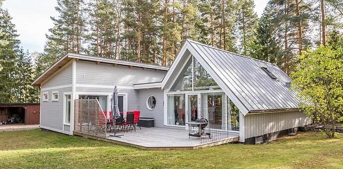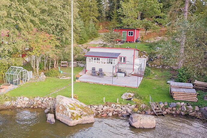Fräscht sommarhus med sjöläge invid Västlandasjön. Boarean är 40 kvadratmeter. Stort soldäck mot sjön i sydvästläge.
