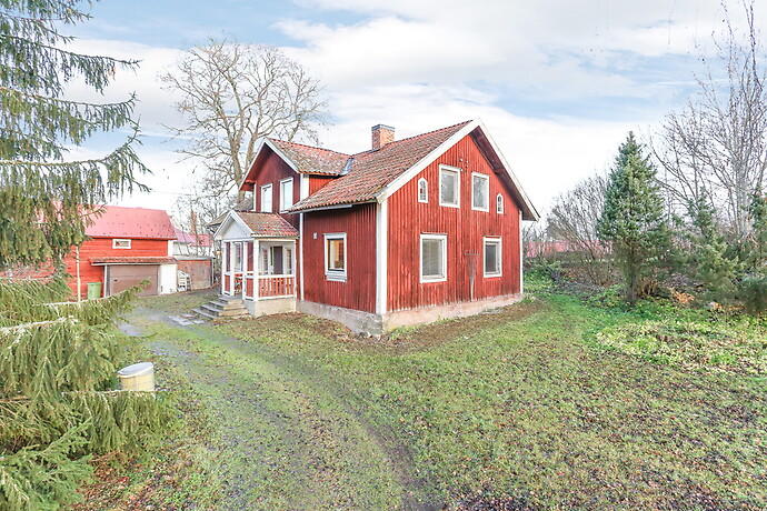 Välplanerat och fräsch torp i 1,5-plan på stor friköpt tomt med lite hag- och skogsmark. Mycket är renoverat 2008-2009 såsom kök, avloppet, 3-glasfönster med mera.