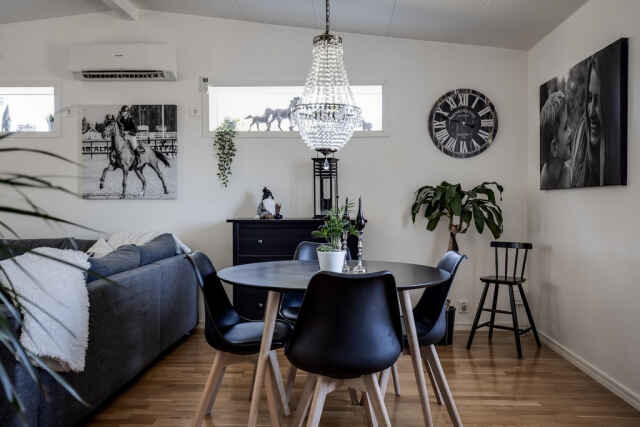 – Det är inte jättevanligt! Oftast finns inte ridhus, två bostadshus och alla dessa möjligheter. De flesta hästgårdarna i området erbjuder färre stallplatser och mindre mark.