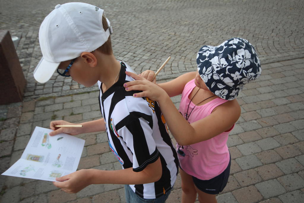 Det är med stora leenden som Gustav och Rebecka har hittat alla svaren. Nu väntar en belöning när de lämnar in sina svar tillbaka i turistbyrån.