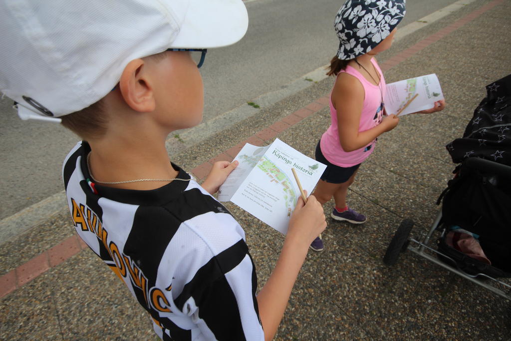 Gustav som är 12 år och syrran Rebecka som är 9 år får var sin folder med karta och ledtrådar. Det handlar om att finna årtal och tecken på några av Köpings historiska hus längs med östra långgatan, jakten går ända fram till muséet på den andra änden av gatan. Starten börjar på torget utanför turistbyrån med att hitta ett årtal på rådhuset.