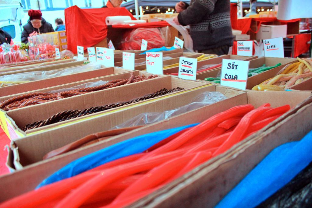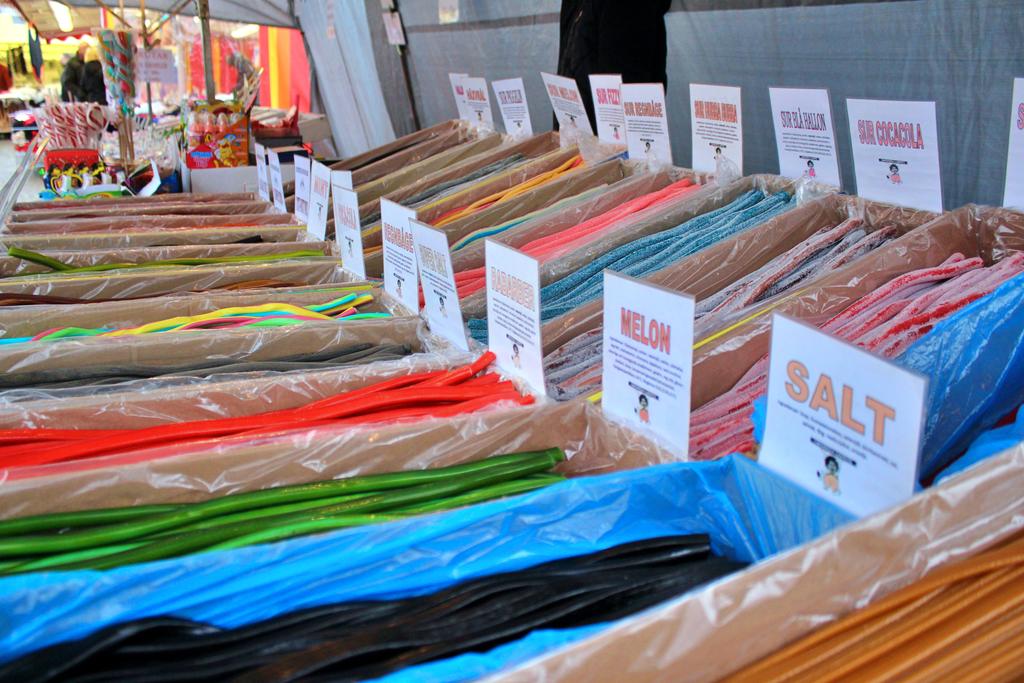 Det var fullt med folk mellan stånden som sålde allt från delikatesser och mössor till korgar och brända mandlar.