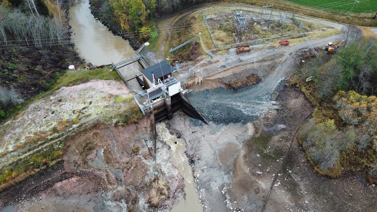 Nygårdsforsens kraftstation efter tömning. Foto: Mälarenergi