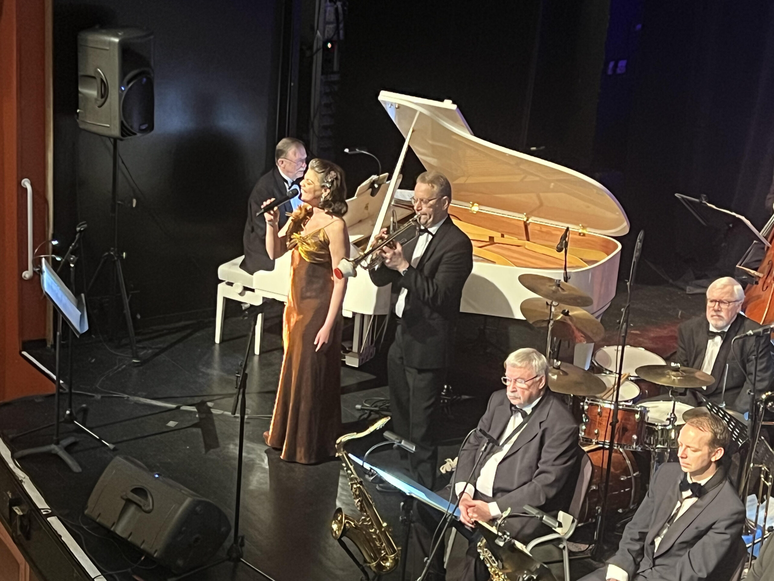Lina Adolphson och Markus Olsson var sångsolister. Den eminente orkesterledaren Örjan Lindvall vid flygeln guidade publiken med sina sedvanliga berättelser om varje låts historia – vem som skrev, hur den kom till, vem som framförde låten första gången. Denna storytelling skapar ett starkt mervärde till musiken och sången för den intresserade publiken.