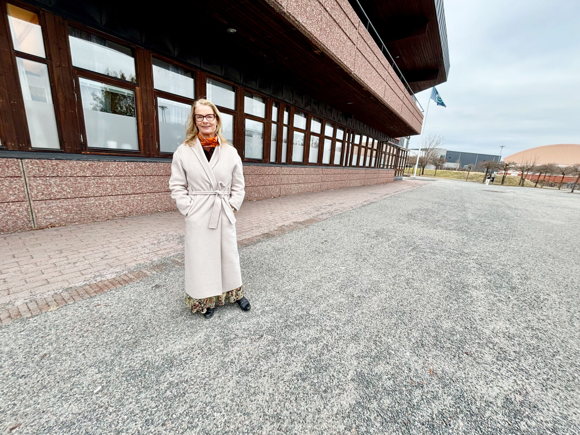 Lotta Edholm hade både de stora och de små glasögonen på sig när hon gjorde en avstickare till Köping på onsdagsförmiddagen.
