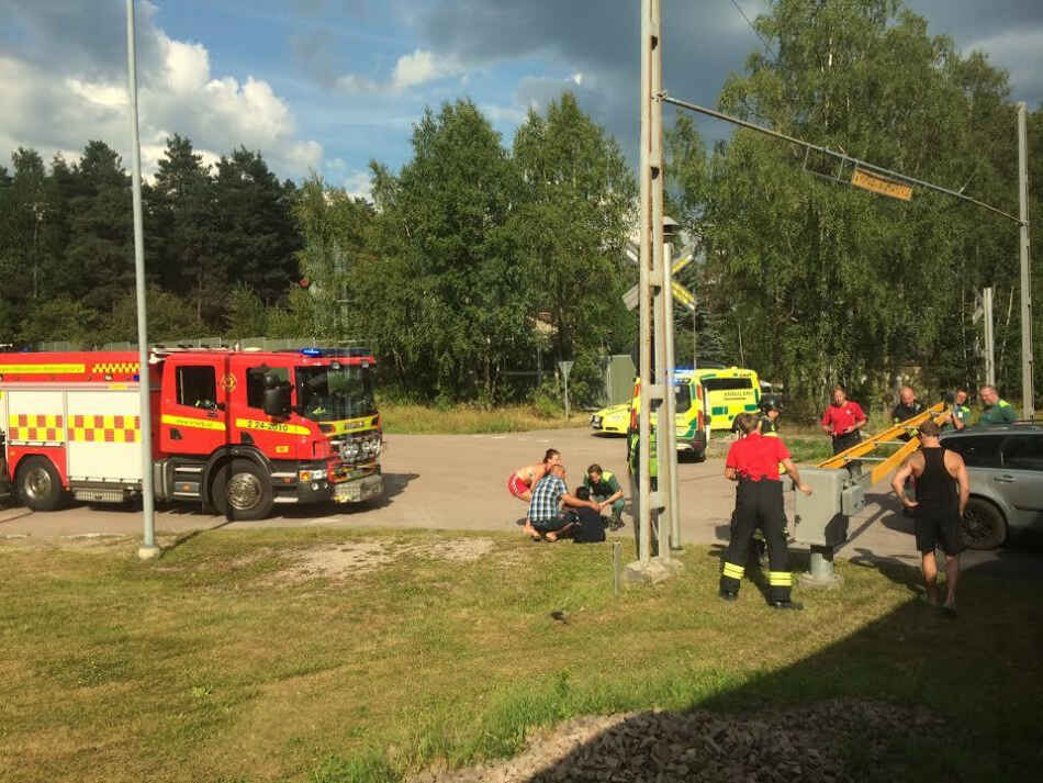 Larm om tågolycka vid övergång
